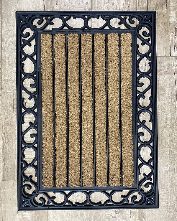 Heavy duty coir brushes shoes clean and absorbs moisture, decorative moulded rubber base,made in India