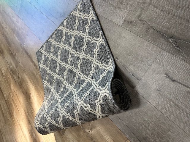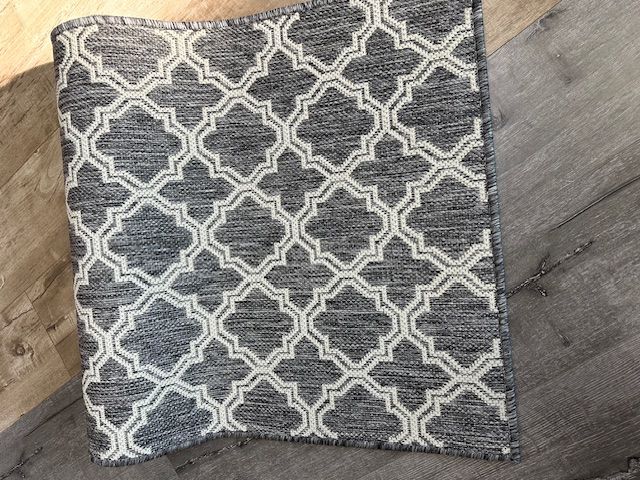 Rubber back non slip, easy clean. polypropylene made in Egypt. Good quality rubber backing does not mark or stick to the floor. Great for wet areas such as kitchen, laundry, entrance Etc.